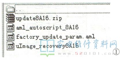 (1)将本机升级压缩包解压(见图1),压缩包可以在本网下载或者到某宝上花几元钱购买。将四个文件存入已格式化后的U盘的根目录下,并将文件名中的“8A16"字符去掉,即文件名分别对应改为updatek1 .zip、aml autoscript 、factory_ update_ param , aml、uImage recoverykl。