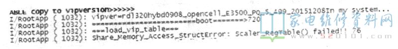 接修一台32E3500液晶电视(9R43机芯),故障表现为显示开机画面后黑屏,或自动进入待机状态。分析检修:上电检测,主板供电正常,怀疑软件有问题。重写引导程序,无法烧写,怀疑主芯片(RTD2982DQ )有问题。更换主芯片后引导程序烧写成功,但开机后故障依旧。连接串口工具,查看开机打印信息,发现打印信息只有4行,如图1所示,判断故障系系统程序启动不良所致,怀疑EMMC异常。更换EMMC,并重新烧写引导程序和主程序后,故障排除。
