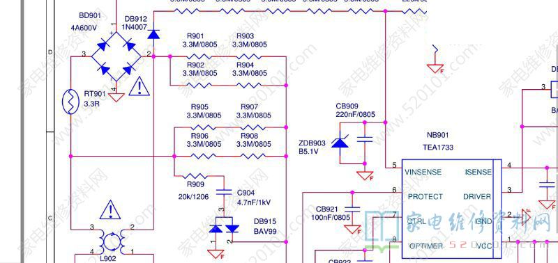 创维32E600F液晶电视不开机的故障维修 2022-07-07 03:34:25 阅读 878 次 评论 0 条 摘要: 接修一台创维32E600F液晶电视,故障表现为不开机,拆机测量电源电压300V有,12V无,测量TEA1733的第一脚,电压低,只有1V怀疑启动电阻坏了,焊下测量果然发现为无穷大,用电磁炉上的820K 2 接修一台创维32E600F液晶电视,故障表现为不开机,拆机测量电源电压300V有,12V无,测量TEA1733的第一脚,电压低,只有1V怀疑启动电阻坏了,焊下测量果然发现为无穷大,用电磁炉上的820K 2个电阻代换后,故障排除。 版权声明:本文为转载文章,版权归原作者所有,欢迎分享本文,转载请保留出处! 点赞 分享: PREVIOUS:创维32X5液晶电视黑屏的故障维修 NEXT:飞利浦42PFL5528/T3液晶电视二次开机指示红灯灭的故障维修 文章导航