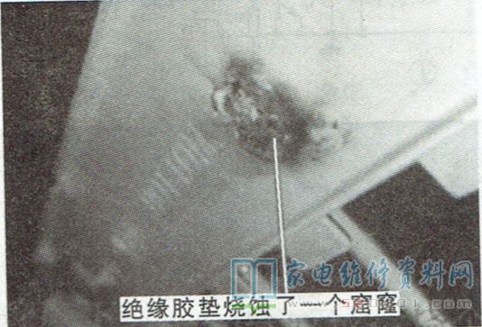 创维47KR08RD液晶电视黑屏的故障维修 2022-07-07 17:38:43 阅读 710 次 评论 0 条 摘要: 接修一台创维47KR08RD型液晶电视,故障表现为黑屏,伴音正常。上电开机,背光不亮,判断故障在背光电路或LED灯条中。拆机检查,发现屏两侧小孔有熏黑现象,如图1所示,说明灯条有问题。拆开液晶屏,发现灯条座 接修一台创维47KR08RD型液晶电视,故障表现为黑屏,伴音正常。上电开机,背光不亮,判断故障在背光电路或LED灯条中。拆机检查,发现屏两侧小孔有熏黑现象,如图1所示,说明灯条有问题。拆开液晶屏,发现灯条座下方的绝缘胶垫已烧蚀了一个窟窿,如图2所示。 割掉烧坏的胶垫,在打火的地方涂.上704硅胶,在不装屏的情况下上电开机,LED灯条全亮。待704硅胶固化后,装好液晶屏试机,故障排除。 版权声明:本文为转载文章,版权归原作者所有,欢迎分享本文,转载请保留出处! 点赞 分享: PREVIOUS:长虹3D55A400ic液晶电视不开机的故障维修 NEXT:创维32S12HR液晶电视开机一会儿后无伴音的故障维修 文章导航