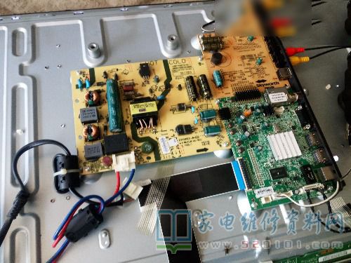 接到一台创维32E360E液晶电视,客户反映不定时会自动待机,然后不开机,刚拿到我这里的时候可以正常开机的,就试了一上午,怎么都没有出现问题。午饭后,关机后再试试就亮红灯不能开机了,看来真有问题,但是把它放一边个10分钟就又会自己开机了,感觉和温度有关,热了就会自动待机,不开机。