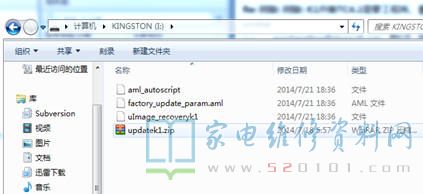 1. 把当前文件夹下的aml_autoscript,factory_update_param.aml,uImage_recoveryk1三个文件放到U盘根目录下