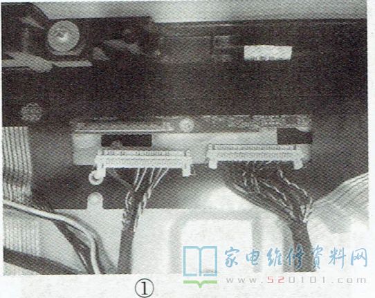 接修一台创维32E50OE型液晶彩电,开机后有厂家画面,无图像,面板按键和遥控器均不起作用。根据故障现象分析,结合实测数据,判断主板有故障。该机主板型号是5800-A8R580-1P40。由于购买或维修原主板成本较高,决定换用市售便宜的V59型通用主板。第一步:选择和屏相配的屏线,拔下原来的屏线仔细观察有5对信号线,供电线在左边,即该机上导线是左供电单8屏线,如图1所示。