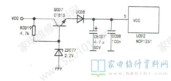 创维8S63机芯液晶电视通电后指示灯闪烁不开机的维修 2022-10-11 19:01:34 阅读 1292 次 评论 0 条 摘要: 接修一台创维液晶电视,采用的是8S63机芯,故障表现为上电后指示灯闪烁,不开机。上电测得开关电源输出的12V电压在12V~10V之间波动。检查稳压电路,未发现异常。测量UOD2 (NCP1251) 的⑤脚 接修一台创维液晶电视,采用的是8S63机芯,故障表现为上电后指示灯闪烁,不开机。上电测得开关电源输出的12V电压在12V~10V之间波动。检查稳压电路,未发现异常。测量UOD2 (NCP1251) 的⑤脚电压仅为10V,明显异常。检查UOD2的⑤脚外围电路,如图1所示,发现CEOD7已无容量,将其换新后试机,故障排除。此时测得U0D2的⑤脚电压为16V。 版权声明:本文为转载文章,版权归原作者所有,欢迎分享本文,转载请保留出处! 点赞 分享: PREVIOUS:采用8S63机芯的创维液晶电视不开机的故障维修 NEXT:乐视X3-55液晶电视更换主板后显示双屏的故障维修 文章导航