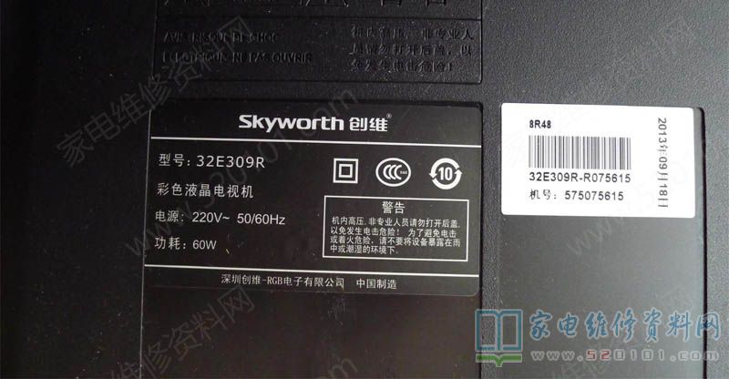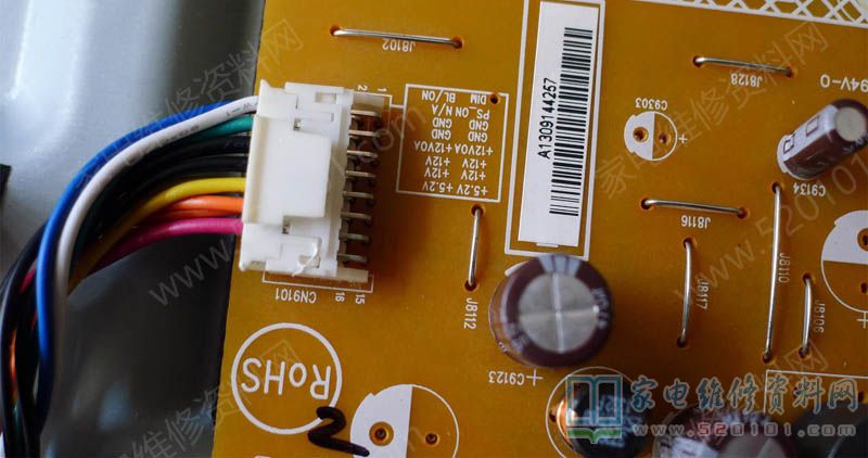 换上二极管检查电源板没有发现短路,但是我还是不放心,所以再通电前串联了个灯泡,通电测试有12v,没有板子上标注的+5.2v电压,心想完了没有修好...... 师傅说通电试试,然后我装上去果然亮了,图像出来了。