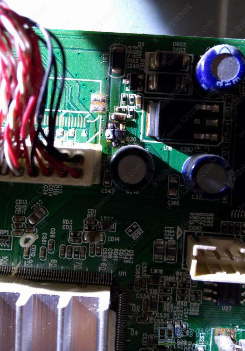 隔天零件到手,Q30用贴片三极管AO3401,逻辑板上换上一个1206 226后通电试机,整机顺利点亮,蓝屏时电流0.42A。用HDMI线连接网络机顶盒看HD高清信号,效果很不错……电视机正常工作时电流在0.31A左右,符合正常工作功耗。
