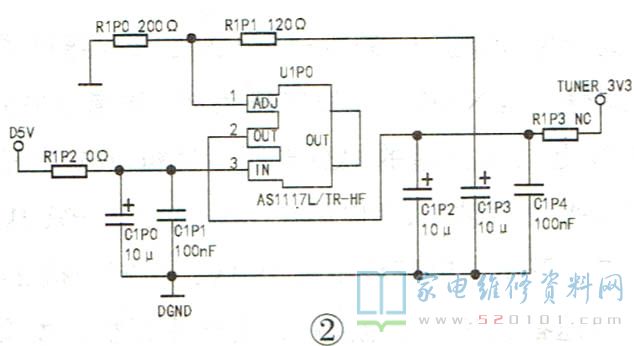 2、增加三端稳压电路U1P0生成3.3V电压,如图2所示。