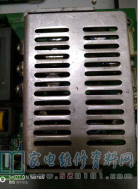 随手拿了块DVD电源板,将5V待机和地线接在DVD电源板上,通电,电视指示灯亮了。开电视,出现光,正常了。那就是电源板负载差了,看了下5V前的电容没怀孕,板子很久了,好多焊点都开了,补焊吧,还是没用,之后顺着5V前查,发现还连接了一个电容,可是看不到,因为这电源板的散热片好大,好密,将电容完全覆盖了,手机闪光灯打开一瞧,只见那电容居然也鼓包了,良心坏坏的啊,还知道躲着我藏起来了。