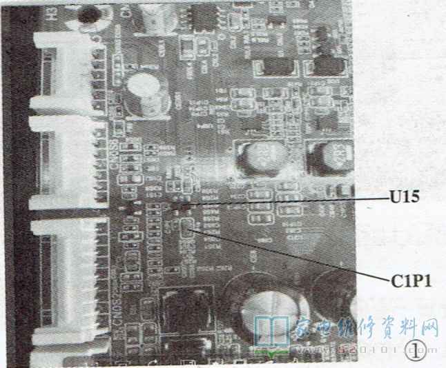 测量遥控接收端(IR)电压只有1.2V,怀疑IR回路有漏电或主IC输出信号电压不正常,更换主IC后故障依旧,由此确定应为信号回路器件存在漏电,拆除电容CIP1后故障排除,如图1所示。