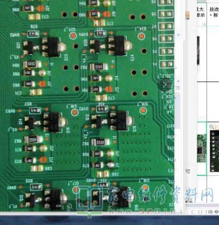 一台创维42E65SG液晶电视,换灯条后降电流比较麻烦一些,此电视是左右侧入式灯条,每个灯条有8路输入,所以技改时费事。安装好灯条后技改电流是很有必要的,主要是让换上的灯条用的住,实践证明是可行的办法。对于这个电视灯条换好后需要将恒流板上做个改动,具体办法是将三极管q28至q31、q36至q39和另外一侧的q11至q14、q20至q23的基极一共16个阻值为1R10和1R20去掉,换成2欧姆的电阻,使原来的电流88毫安降为46毫安和54毫安,基本不影响背光效果。同行朋友们不妨试试看。