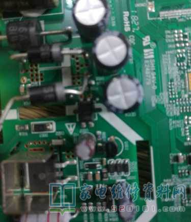 接修一台创维40X6液晶电视,故障表现为上电三无,测进电电压正常,测12V电压0V,59V电压只有十几伏,测阻D103和D104二级管阻值只是0,换了D103型号是D5100,测正常后,上电正常开机,故障修复。