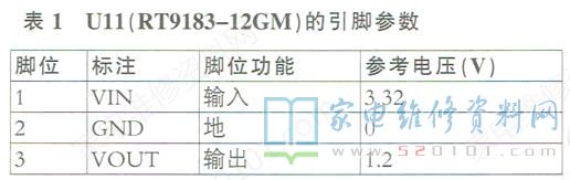 分析检修:屏幕能显示白光,说明低压驱动板已正常工作,据此分析白屏原因有:(1)主芯片UC1 (R8J01076FP) 的供电vCC(3.32V)和1.2V异常;(2)芯片本身异常;(3)屏驱动板中的U12输出伽马校正电压异常。