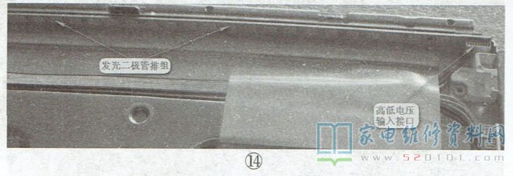LG屏LC470WUL-STB1(ELED)内部侧部发光二极管排组如图14所示,该机背光驱动板型号为:6917L-0021A,实物如图15所示。