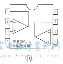 LM2903内置两个独立的低功耗、电压比较放大器,共用一个电源输入。芯片内部结构如图19所示,电压功能参考表如表5所示。