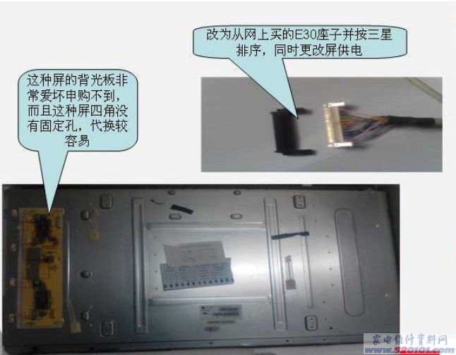 TCL L32E10液晶电视(ODM机芯)有竖线(图) 2013-05-29 18:55:41 阅读 410 次 评论 0 条 摘要: 故障:竖线 显示屏型号京东方HV320WX2-120,这种屏在总部很难申购到了,等了将近一个月一直没有新屏到,用户又催的着急,只能另想方法,发现库存老屏奇美V315B1-L01尺寸很合适,只需把京东方的X30座LG排 故障:竖线 显示屏型号京东方HV320WX2-120,这种屏在总部很难申购到了,等了将近一个月一直没有新屏到,用户又催的着急,只能另想方法,发现库存老屏奇美V315B1-L01尺寸很合适,只需把京东方的X30座LG排序改为奇美用的E30座三星排序,更改屏供电为5V,开机正常显示。 版权声明:本文为转载文章,版权归原作者所有,欢迎分享本文,转载请保留出处! 点赞 分享: PREVIOUS:TCL L42E4300-3D液晶采用T420HVD01中心逻辑板机器黑屏通病处理办法(图) NEXT:TCL L32C12液晶电视(MS181机芯)无声 文章导航
