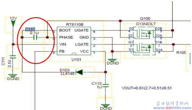 障现象:不开机 维修与分析:通电试机不开机。测量每个点的稳压,测量时发现5V都没有。只有1.2V左右,于是把12V转换5V的IC,U101换掉但是故障依旧。于是又把Q100也换了故障依旧。在测量IC外围的电阻电容,在测量到C112时发现与好板有差异。于是更换试机。开机正常,故障排除。
