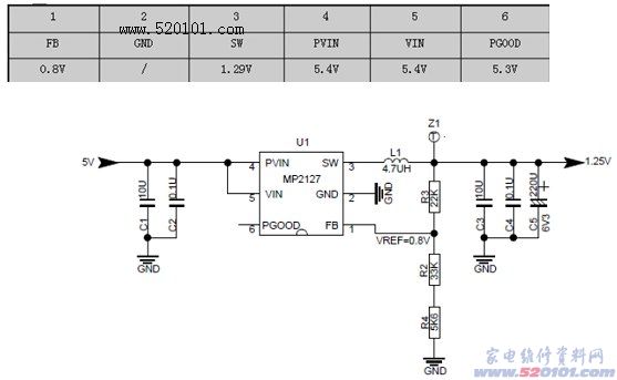 用途及功能:用于给IC 内核供电的低压大电流供电电路。