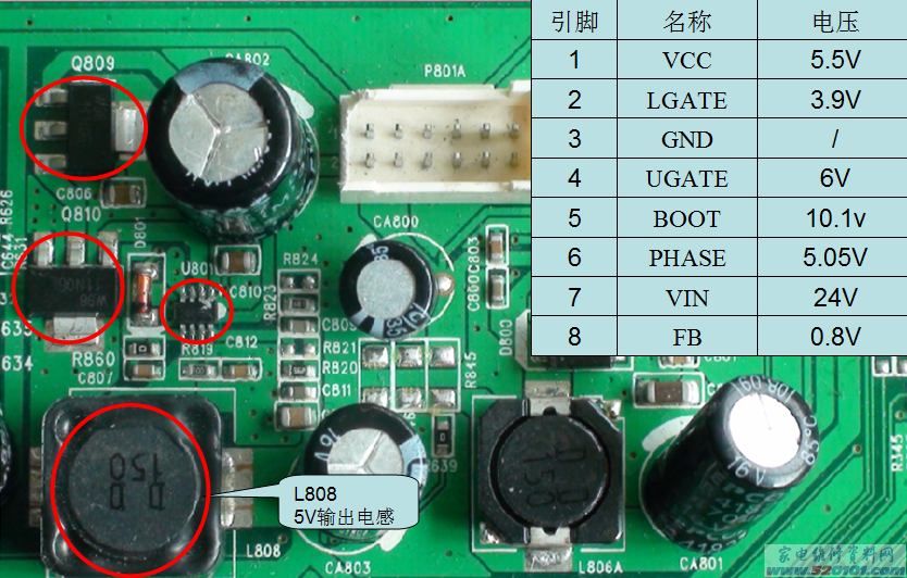 MS58机芯的-U801(12V-5V)参考测试点