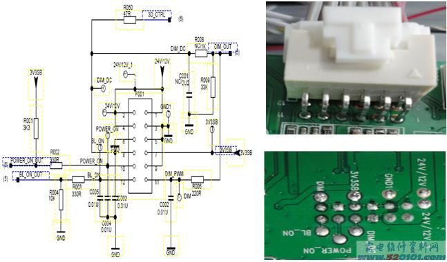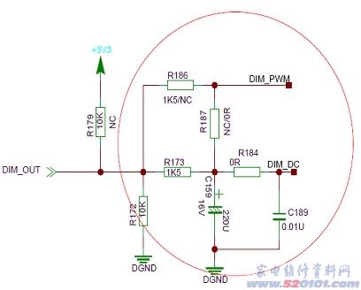 该部分主要控制背光的开关和亮度。亮度控制分PWM调节和电压调节两种,主板可同时输出PWM与直流,视电源板需要而选择。