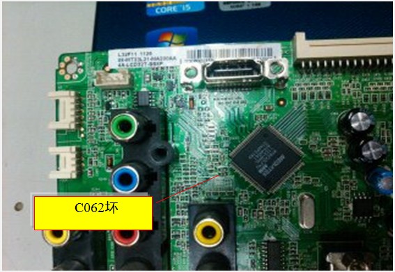 分析与检修:开机检测待机电压3.3V正常,没有PW-ON信号电压,说明MCU没有工作;检查其工作条件,总线电压、晶振、供电都正常,发现复位电压不正常只有1.9V,正常为3.1V;检查复位电路(由Q001、Q003部分电路组成)元件基本都正常,断开U001的37脚到复位电路上的R070,测到Q001的C极电压恢复正常3.3V;检查U001的37脚外接元件基本都正常,测量37脚对地阻值和好板的一样,怀疑电容C062漏电,代换后电压正常,开机观察一天没问题,此故障是由于C062漏电拉低复位电压造成的不开机。
