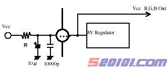 PIN20:AFC FILTER行压控振荡器AFC滤波 PIN43:CCD VCC 为1行延迟和CCD供电
