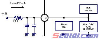 PIN18:VCO IREF 压控振荡器基准脚 PIN19:HORIZONTAL/BUS VCC 行/总线供电