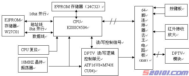 微处理器是以三星公司SAM8TRC系列的RS88C4504为中心组成其方框图如下: