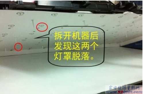 TCL L55F3300-3液晶(MT25CN机芯)屏上有两处散光点 背光不均匀(图) 2017-05-16 19:27:41 阅读 298 次 评论 0 条 摘要: 故障现象:屏上有两处散光点 背光不均匀维修方法: 机器是网点拉回维修,填写故障现象是背光不均匀 ,验机发现屏上有两处散光点,怀疑是LED灯有问题于是将机器完全拆开,机器的螺丝用的是内六角型的,拆卸一定要非常小心,完全 故障现象:屏上有两处散光点 背光不均匀维修方法: 机器是网点拉回维修,填写故障现象是背光不均匀 ,验机发现屏上有两处散光点,怀疑是LED灯有问题于是将机器完全拆开,机器的螺丝用的是内六角型的,拆卸一定要非常小心,完全拆开后发现是LED发光灯上面的灯罩掉了两个,于是用胶粘好,将机器装好后,测试故障排除。 请看下图: 版权声明:本文为转载文章,版权归原作者所有,欢迎分享本文,转载请保留出处! 点赞 分享: PREVIOUS:长虹C2588Z彩电VD405不良造成无彩色无字符显示 NEXT:新型彩电常用的七种遥控系统原理分析与检修(下) 文章导航