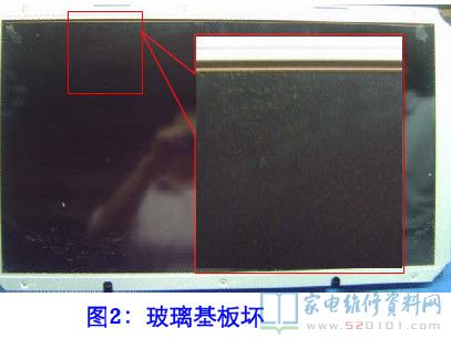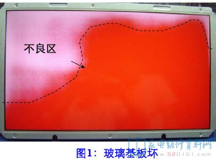 分析与维修:刚开机时单色红场画面的不良区域由少到多演变,图像内容正常,只是类似于被云遮盖住,经排查此现像基本确定为玻璃基板坏。随后在维修商那里也得到进一步确定。