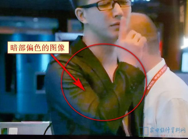 接修一台TCL液晶电视,型号是D49U561,故障现象是刚开机时图像正常,但3~5分钟后图像的暗部从正常图像到偏色,逐步加重,如下图所示。从现象看像是灰阶电压出现偏差,应该是灰阶电压形成电路的集成块热稳定性不良,所以决定拆机检测。