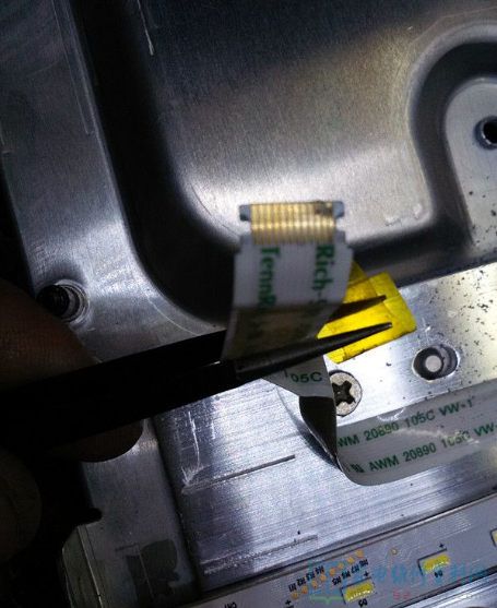 TCL L39E5050A-3D液晶电视黑屏通病维修 2019-05-14 06:26:50 阅读 434 次 评论 0 条 摘要: 本人已经维修过三台这款型号电视都是屏里面灯条排插线问题,故障是开机有声音黑屏,应该是这型号机的通病。拆屏过程就不说了,拨出排线,看见有3条已经痒化,用酒精清洗过还是一样; 用 本人已经维修过三台这款型号电视都是屏里面灯条排插线问题,故障是开机有声音黑屏,应该是这型号机的通病。拆屏过程就不说了,拨出排线,看见有3条已经痒化,用酒精清洗过还是一样; 用剪刀剪掉一半,插上去再用强力胶布贴紧排线; 通电开机灯条正常亮; 装好开机图像正常。 版权声明:本文为转载文章,版权归原作者所有,欢迎分享本文,转载请保留出处! 点赞 分享: PREVIOUS:创维42E380液晶电视屏换背光灯(图) NEXT:康佳LED50M6180AF液晶电视绿灯亮但不开机 文章导航