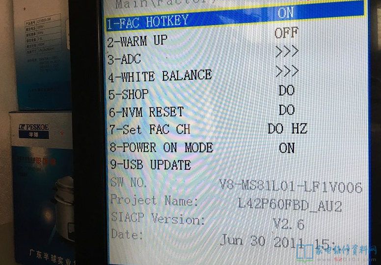 接修一用户拿来了一台TCL L42P60FBD电视,用户说屏幕左下角出现一些英文字母闪烁,经过本人测试在TV、AV、电脑、USB等信号源下功能都无法接收信号,应该是用户误操作进入了工厂总线模式,此问题解决不用拆开后盖,直接用遥控器进入总线,将一、二、三项数据改下OK,如下图所示。进入总线的方法是:在TV信号源下,按遥控器“菜单”进入用户菜单,将光标停在对比度一项上,然后依次按遥控器数字键“9+7+3+5”即可。