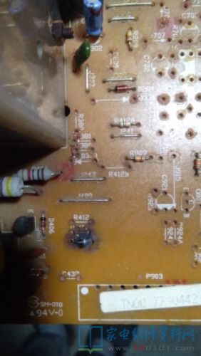 接修一台TCL王牌彩电2118E,开该电视机壳,测量电源与+B电压112V都正常,用直眼观察,见高压包37-BSC250-2521X已经漏白色胶鼓起来,ABL电阻R411 1K已经烧焦,买新包换电阻,亮度图像一切正常,请大家多注意,这电阻R411是1K,R412A 1.5K。希望对还在用老牌电视和维修师傅有帮助。