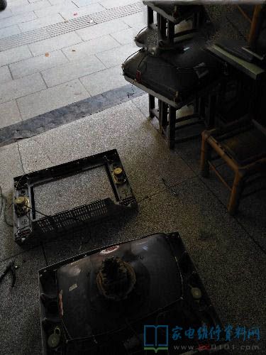 接修一台商家送来的TCL彩电AT25A11,故障表现为不开机,拆机发现行变已取下引脚,放在电路板上,目测电路板无明显元件损坏,测+B电压正常,根据经验判高压包故障,征得商家同意,购回高压包,上机发现+B电压波动,接假负载灯泡一亮一熄,将行管基极接地,+B稳定正常,换回原高压包,故障一样,证明非高压包问题。