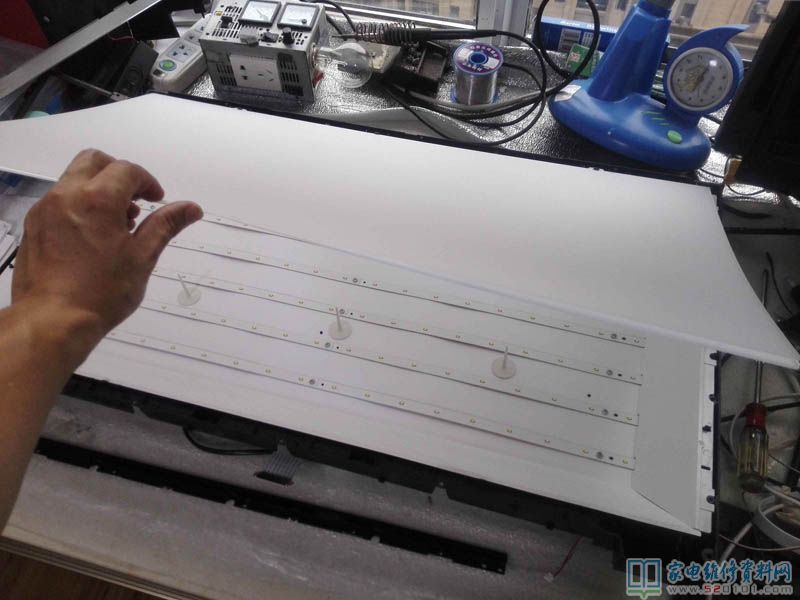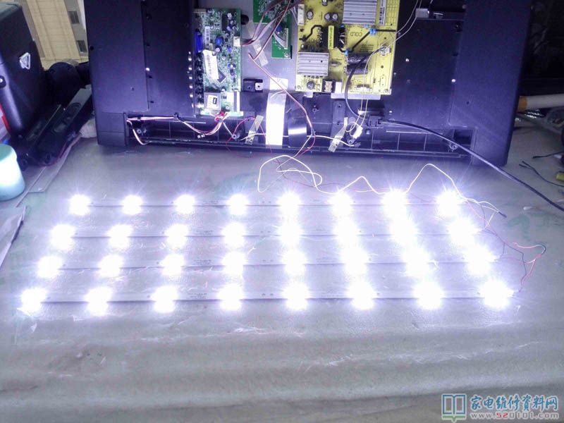 安装好灯条后,再按照相反的顺序把屏幕装回去,拿屏幕的时候一定要小心,轻放到透光板上,再调整位置。安装好后,通电测试,完美点亮。