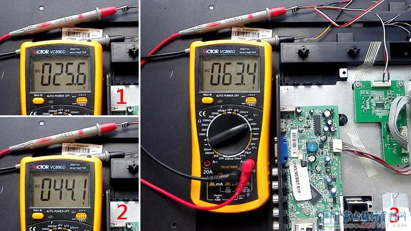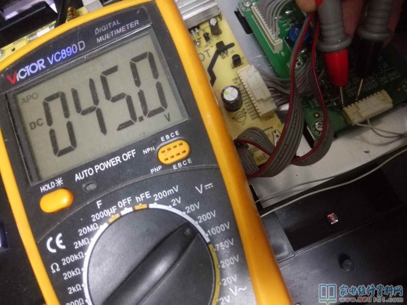 那就再看看开机瞬间有无瞬时高电压,通过视频截图看出,瞬时电压达到63.4V,然后回落,说明升压电路工作正常,也就是说恒流板工作正常。