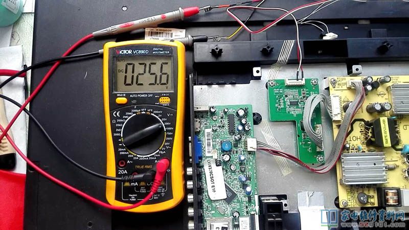前一段时间修理一台TCL L32S11液晶电视,故障是黑屏有声音,手电照射能看到屏幕人影,开机时背光一闪即灭。从故障现象来看,是背光出问题保护了,估计灯条坏的面较大。背光不亮,主要有两方面的原因:一是灯条故障,二是恒流板故障。首先检查恒流板是否有问题,测试恒流板供电正常,而灯条插槽电压也是25.6V。因为是拔掉灯条测试的,所以有可能是恒流板升压电路因为开路保护没有工作,也有可能是恒流板升压电路本身有故障没有工作。