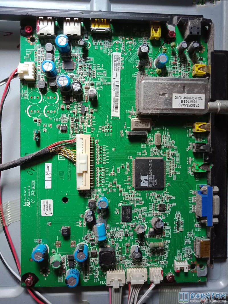 接修一台TCL王牌L32P31BD液晶,故障表现是开机指示灯亮,按开机键指示灯闪烁不开机。开后盖检查背光不亮,24V正常,1.8V、3.3V、待机5V正常。测DIM电压时有时无,伴随着背光闪烁。后发现灰胶下面有控制DIM的偏置电阻开路。更换后正常,机器修复。