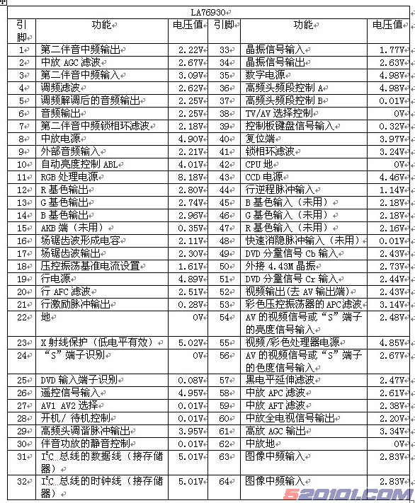 从N201 56脚输入视频信号的另一路在集成电路内部进行彩色制式识别。当输入的的PAL制或NTSC制信号经自动色度控制电路、色度带通滤波器、PAL/NTSC解码器、1H基带延时后,送入RGB矩阵电路与亮度信号一起处理,解调出R、G、B信号。