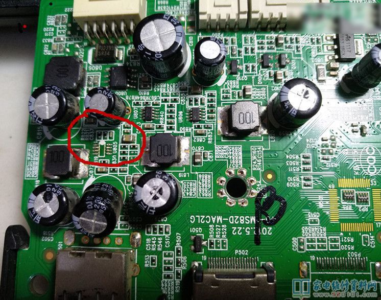 TCL L32E09液晶电视红色指示灯亮不开机故障维修 2020-01-14 18:31:48 阅读 448 次 评论 0 条 摘要: 接修一台TCL L32E09液晶电视,故障表现为红灯不开机。经检查,电源板正常。测量主板,5V对地短路。由于5V在主板线路上电容和支路较多,难以一下子确定短路元件。于是,决定采用网上朋友们的烧机大法,在 接修一台TCL L32E09液晶电视,故障表现为红灯不开机。经检查,电源板正常。测量主板,5V对地短路。由于5V在主板线路上电容和支路较多,难以一下子确定短路元件。于是,决定采用网上朋友们的烧机大法,在5V电路上,接入直流电。后来发现主板发热严重,用镊子轻触,进一步发现元器件U805脱离主板,更换后故障排除。 版权声明:本文为转载文章,版权归原作者所有,欢迎分享本文,转载请保留出处! 点赞 分享: PREVIOUS:清华同方LE48TM6500L液晶电视偶尔开不了机故障维修 NEXT:TCL L40F3200B液晶电视不定时黑屏故障维修 文章导航