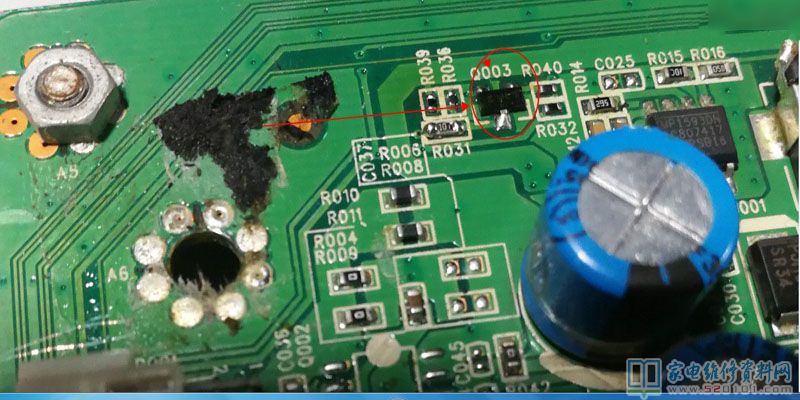 接修一台TCL L40F3200B液晶电视(MT01C机芯)的王牌,出现的问题是不定时黑屏,在维修部试机故障的确如此,拆开机器,测量黑屏时 BL-ON端是低电平,这个不正常。顺线路检查发现Q003 b脚0V,怀疑是Q003不良,更换后正常。