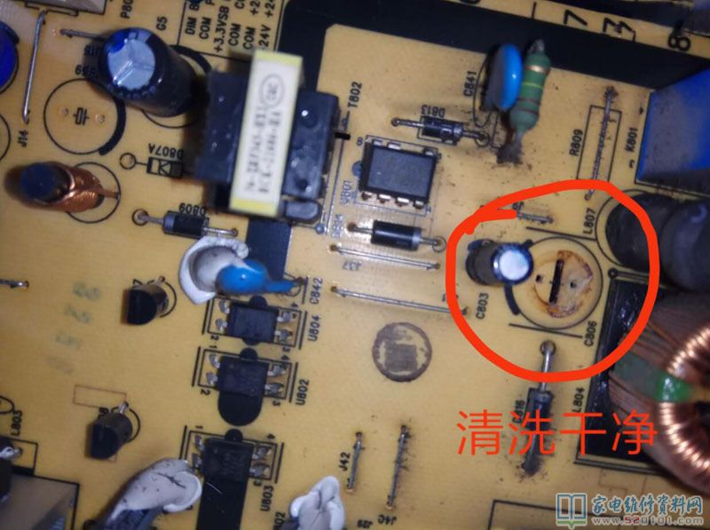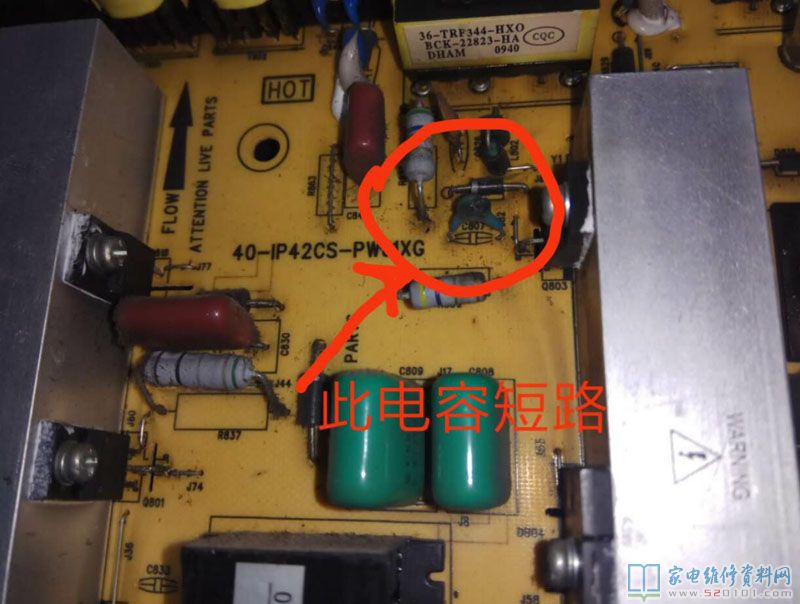 接修一台TCL L42E9FBD液晶电视,故障表现为不通电,检查保险丝断,目测高压瓷片电容已炸裂,用万用表测量已经短路,换上新零件试机正常,无意中碰到待机电源高压滤波电容,发现锈断一只脚,拆下清洗换新交付用户使用,。以前碰到滤波电容失效,电源芯片必坏无疑,今天这台机奇了怪了,滤波电容锈断一只脚,还可以正常工作。
