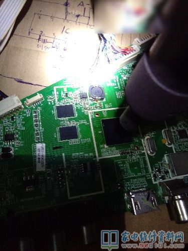 接修一台同行转修的TCL液晶电视,这台机器故障是开机红灯亮不开机,拆开机器,检测主板5V、3.3V供电正常,然后检查主控芯片外围电阻R765电压3.1V正常检查,HTCB82556MBFN数据到主控芯片检测点T7-T10数据交点电压正常,都正常。只能接上电脑打印,打印出来显示SPIFLASH检测不到,应该是主芯片问题,直接更换MSD6A608HTAB后,再接上电脑打印显示正常。