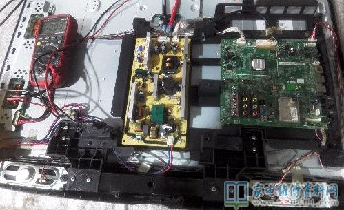 接修一台用户送来从其他维修同行转过来的TCL L32F19液晶电视,说在家里的时候,刚开始开机几分钟后才会启动开机,开机就可以一直正常观看,现在要一个多小时后才会启动,客户留下电话等通知。忙完其他活开始修,因为是转修机,机壳螺丝也没有,电源板的电容也换过。还是测量下电源各电压正常。