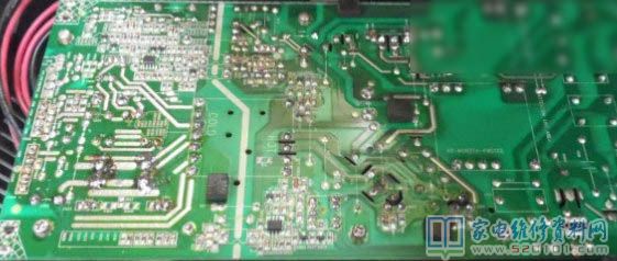 接修一台TCL 32K73 LCD液晶电视,故障表现是指示灯的红灯闪烁不开机,首先拆机检查,看到电源板很多虚焊的地方,先补焊再说。补焊通电测试红灯闪烁的频率和未补焊之前有所不同。测量5V电源电压随灯的闪烁变化,检查没有明显的损坏元件,于是代换C836,和C832,50V/33UF ,50V/10UF 电容试机,5V电源稳定,开机蓝灯亮但是没有12V,24V电源,检查24V电源对地电阻很小,检查整流管没有问题,检查电容C802,C803,35V/2200UF 电容,一个基本无容量,一个漏电,一下找不到对应的于是用35V/1000UF 代换。试机24V,12V有,屏亮,连接信号图声正常,机器修复。