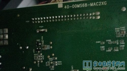 接修一台TCL L52E9FBD液晶电视,故障表现为冷机开机灯闪屏出光又关机又再次开机循环开关机,几分钟后热机后就开机了,冷机后又一样。打开后盖电源板次级多个电容鼓包,换后故障一样,加热主板芯片就能开机,通知用户换板,价高用户拒绝,最后根据网上的方法检查电源板输出电压正常,去掉主板背面贴片D001(三脚)之后冷机正常开机了。