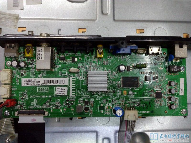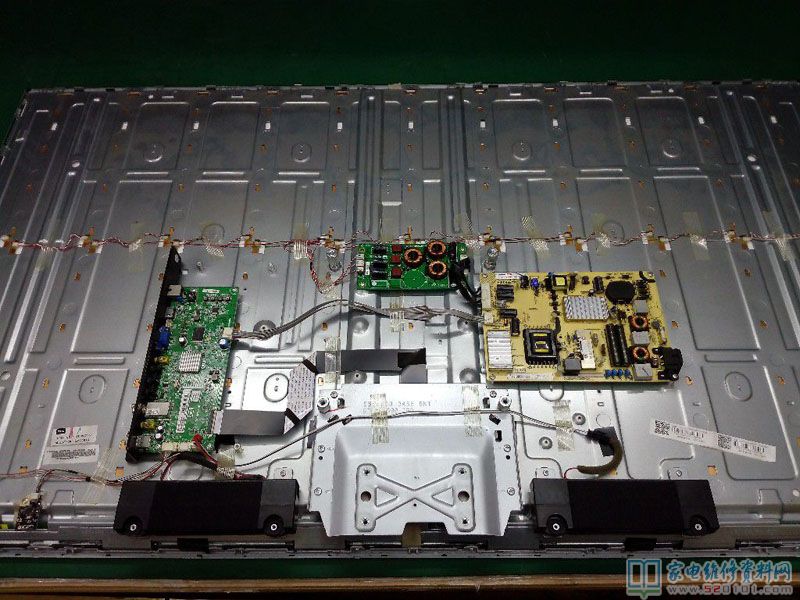 接修一台TCL L55F1600E液晶电视,故障表现为开机三无。开盖检测保险完好,电源初次级无短路开路。上电,指示灯亮,测5V,12V均正常,背光亮,屏显蓝屏。仔细检查电源板和主板无虚焊脱焊,装机。