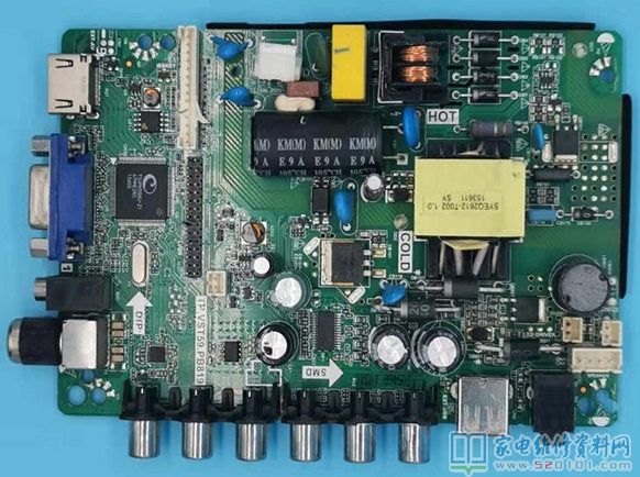 接修一台TCL LE32D99液晶电视,客户说在收看中"啪"一响后三无,拆开机器,主板型号是TP.VST59.PB818,发现电源部分CB116瓷片炸裂,电源管对地0.4欧电阻开路,造成六脚电源,取样三极管电阻等多元件损毁,元件极小难焊接难修复,幸好在修理间找到一同型号板(CPU部分坏,测电源正常),于是找来锋利钢锯,先将电源与主板连接处的变压器光耦等元件拆除,用锯锯下好的电源部分与原板进行拼接,在接口处涂上硅胶加固,试机一切正常。