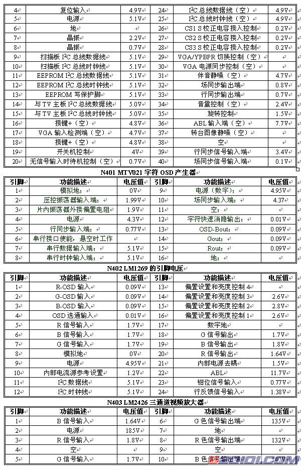 HT-3261E的以CRT板主要由高清字符产生器N401 MTV021 预视放N402 LM1269, 视放N403 LM2426, 直流偏置N404 LM2483组成。