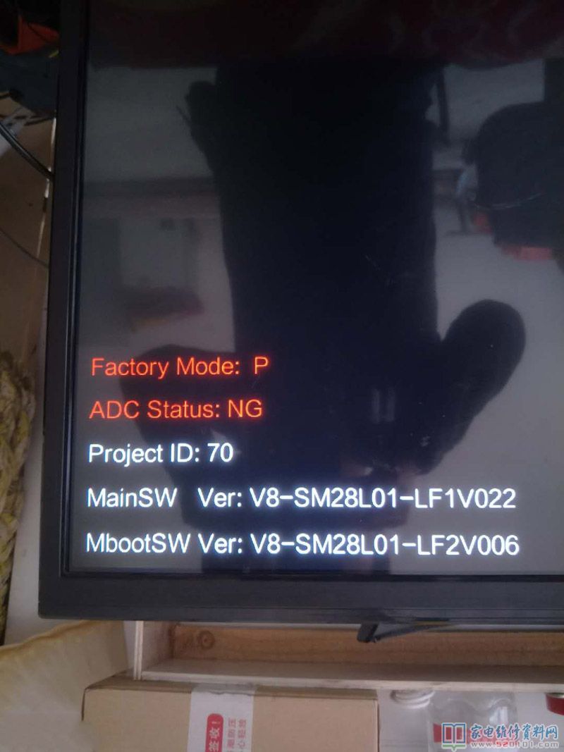接修一台TCL牌LE42D8800液晶电视,故障表现是开机显示图标后即关机,有时能正常启动但也显示图片上的英文字母,拆开机器用点灯仪检查灯珠正常,后查得为背光保护。该背光芯片有两路输出和两路保护,拔掉上半部背光机子能开机了,将背光OB3372的9脚与原电路断开并与10脚短接故障排除,但左下脚一直有英文闪烁(如下图所示),解决的办法是在对比度一项输入9735,把第一项关闭即可。